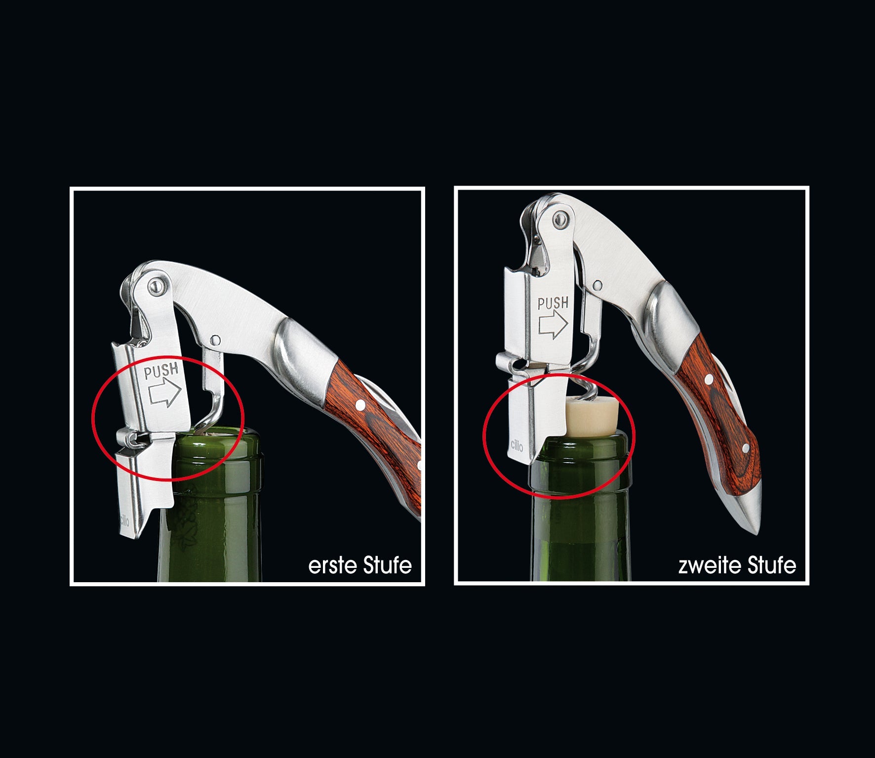 The servant knife is characterized by being made of high quality and good functionality. The servant knife tacks the cork in 2 steps, so it is especially easy to open a bottle.