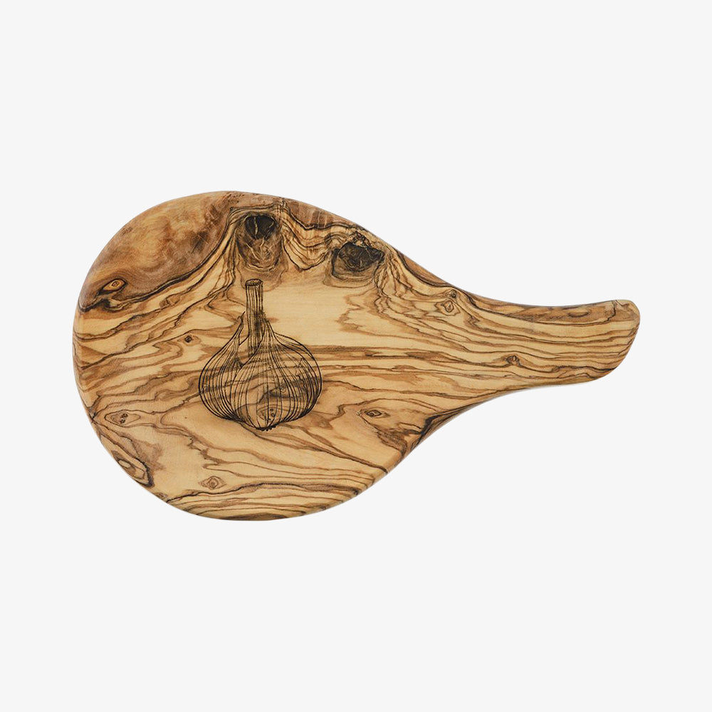 This beautiful olive wood board is perfect for cutting garlic on, it keeps smell of garlic away from the other vegetables. It can also be used to serve. The board measures 25cm (l) x 19cm (w) x 1.5cm (h)