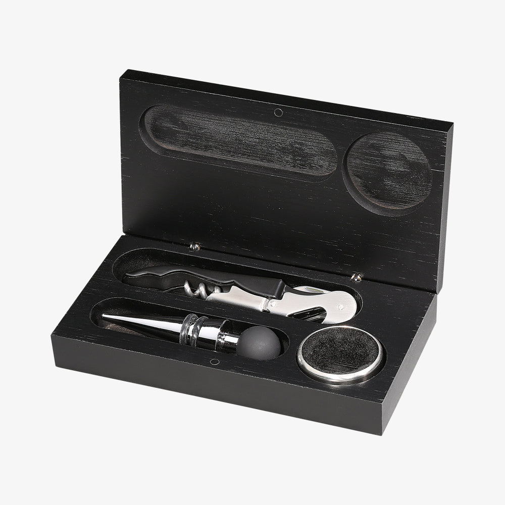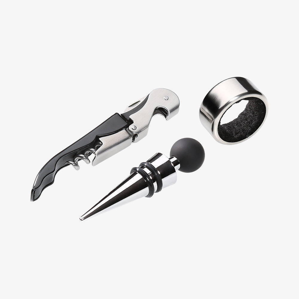 BARDOLINO vinsettet inneholder en servitørkniv, som kan brukes som korketrekker, foliekutter og ølåpner. I tillegg til servitørkniven kan du finne en dryppfanger, slik at du kan helle uten søl, og en flaskekork
