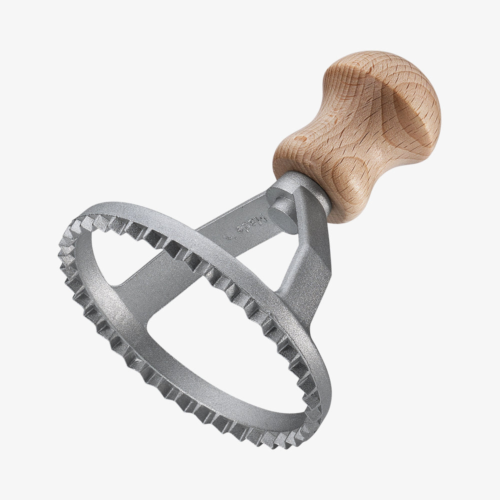 Hjemmelaget ravioli er alltid en sikker vinner. Du bestemmer selv fyllingen, og de smaker bare bedre. Den runde raviolikutteren gjør det bare enklere. Håndtaket er laget av bøketre og ligger godt i hånden. Aluminiumskutteren bringer pastadeigen din raskt og jevnt inn i en fyldig form. Kantene lukkes tett slik at raviolien ikke mister fyllet under koking. Raviolikutteren har en diameter på 8 cm.