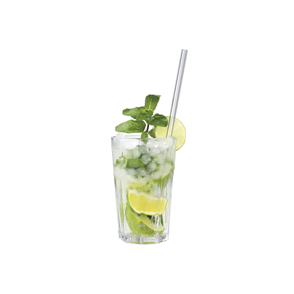Sugerørene VETRO og VETRO NERO fra Cilio er laget av borosilikatglass, som også brukes til å lage tekanner. Den er hygienisk, varmebestandig og robust. Rørene kan rengjøres med medfølgende børste og kan også settes i oppvaskmaskin. Da er du klar for neste fest, cocktailkveld med venner eller solnedgang på balkongen. Visuelt er glasset en oppgradering til plastmodeller. Den sorte glassversjonen ser spesielt bra ut i fargerike drinker. Brus, akkompagnert av en sitronskive og frisk mynte, gjør også at sigden ser fin ut.