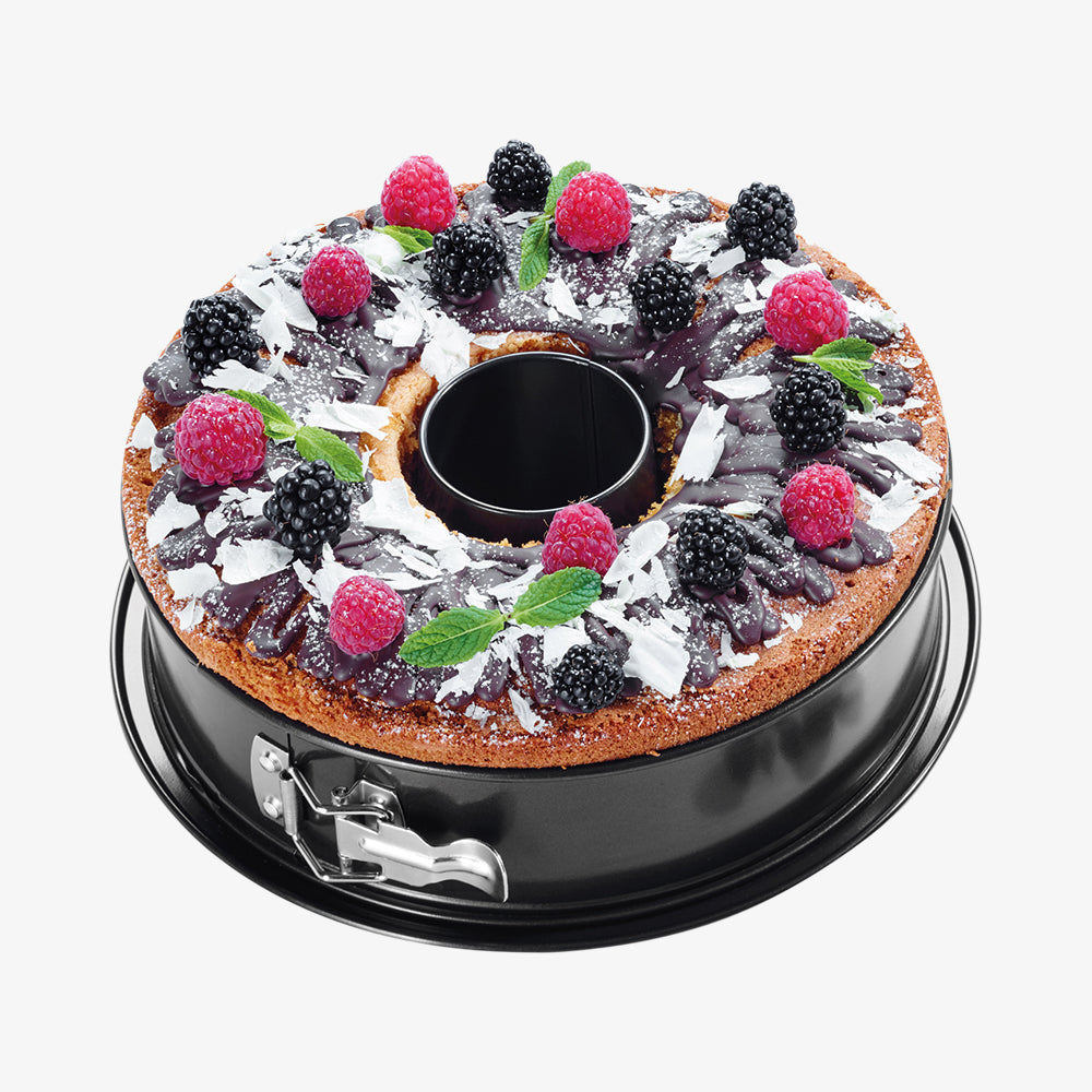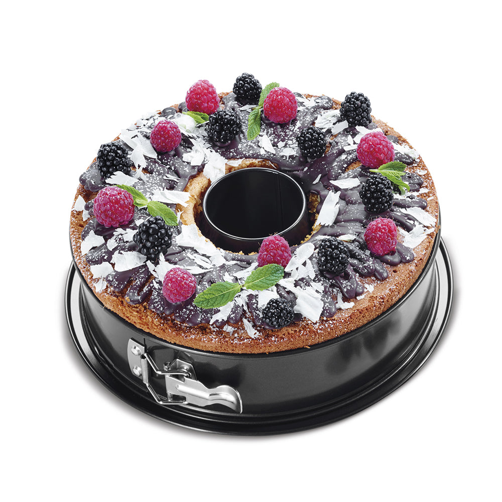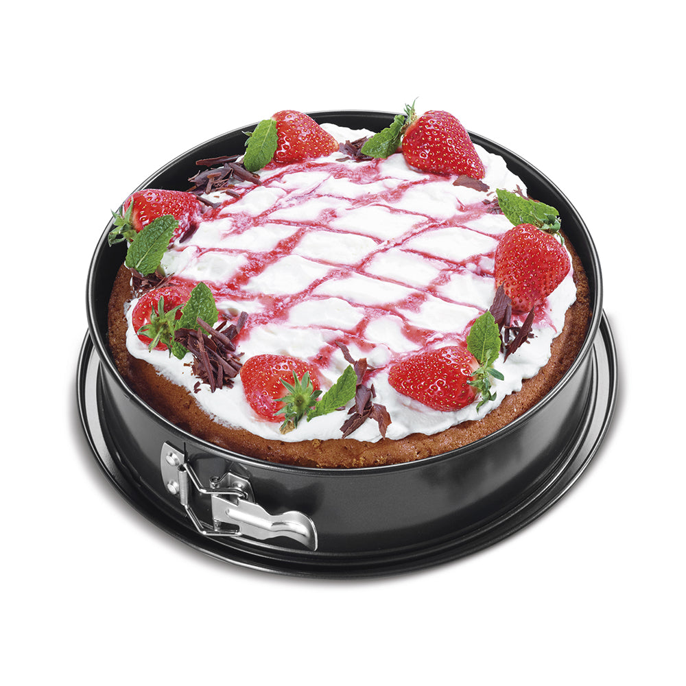 Med denne springform fra Küchenprofi har højkvalitets stålplader, som fordeler varmen jævnt. Den har en lækagesikker bund, så man ikke får en ubehaglig overraskelse. Den har non-stick belægning, så kagen ikke sidder fast. Springformen har 2 bunde.
