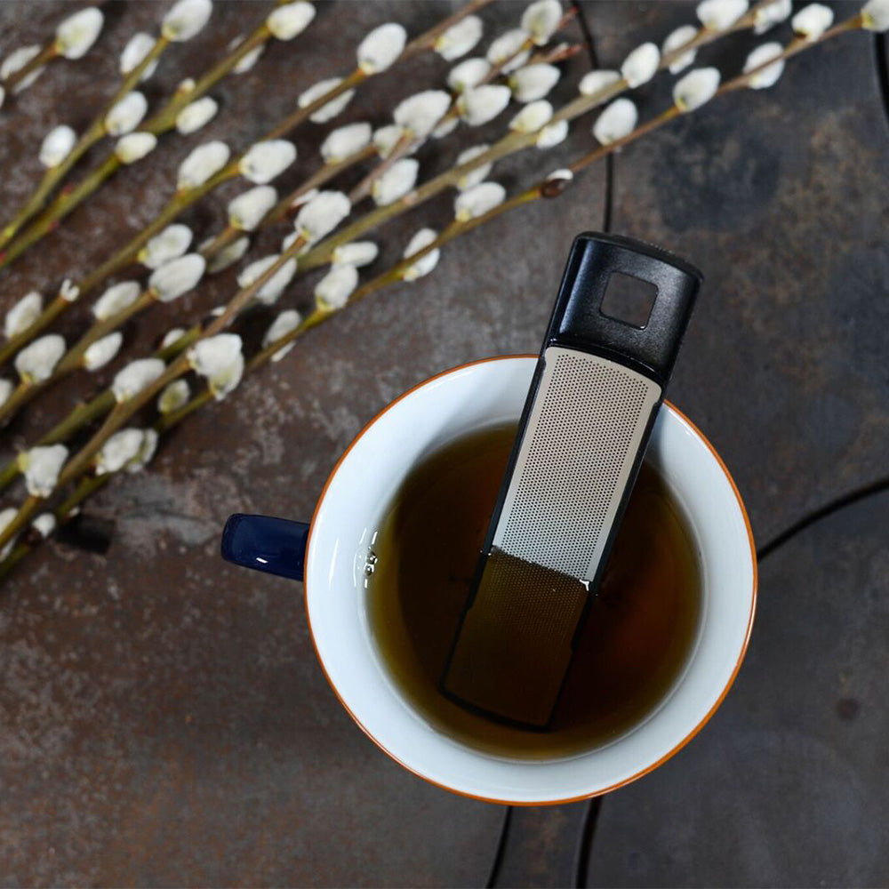 Praktisk og flot designet finmasket te-si fra Drosselmeyer Design. Velegnet til finbladede tesorter. Tåler maskinopvask.
