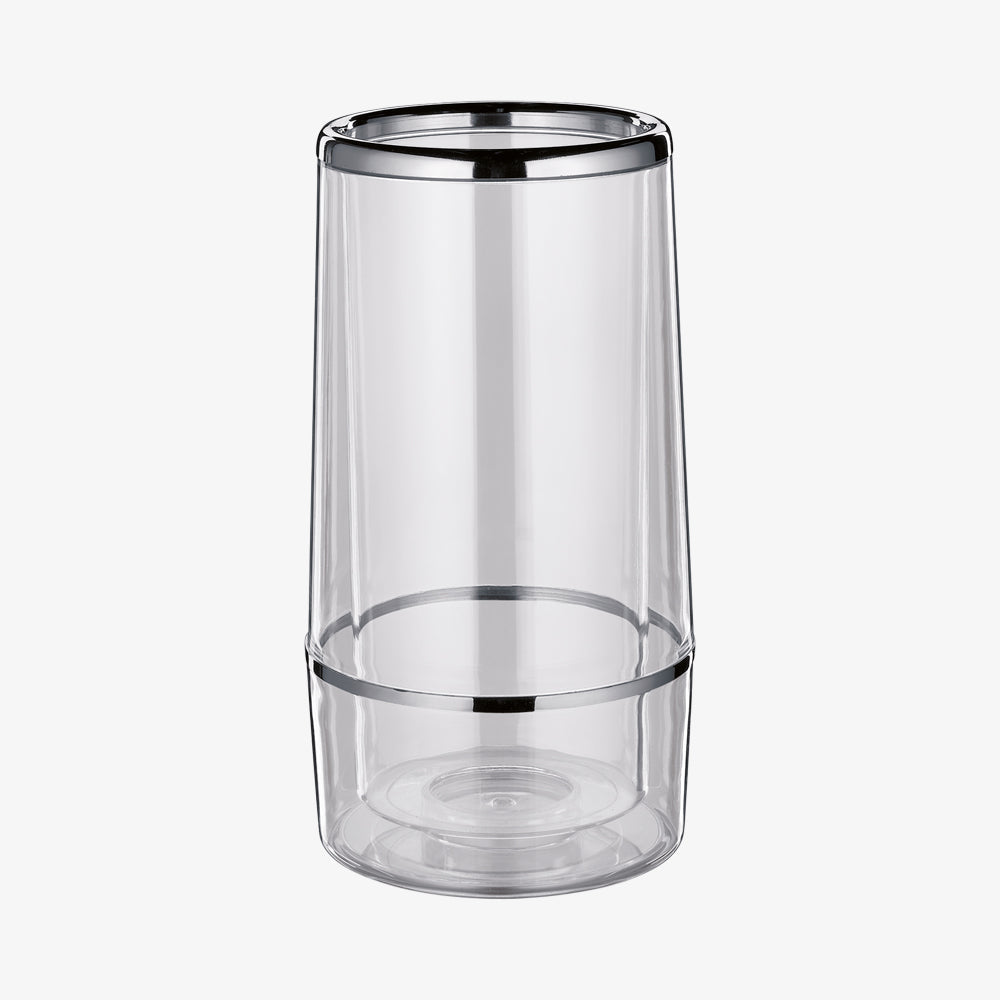 En måltid med goda vänner eller en romantisk middag kan ibland ta längre tid. För perfekt njutning är det viktigt att dryckerna är väl kylda till sista droppen. Vita eller mousserande viner och rosé är i goda händer med BASIC vinkylare från Cilio. Kylaren håller flaskan pålitligt sval tack vare sitt dubbelväggiga system. BASIC är gjord av okänslig akryl. Den moderna designen passar alla bord.
