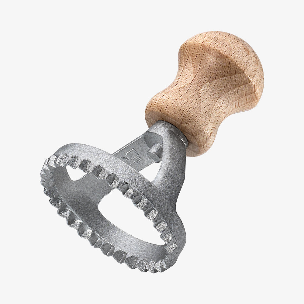 Hemlagad ravioli är alltid en säker vinnare. Du bestämmer själv din fyllning och de smakar bara bättre. Den runda ravioliskäraren gör det bara enklare. Handtaget är av bokträ och ligger bekvämt i handen. Aluminiumskäraren för din pastadeg snabbt och jämnt till en fyllig form. Kanterna stängs tätt så att raviolin inte tappar fyllningen under tillagningen. Ravioliskäraren har en diameter på 5,5 cm.